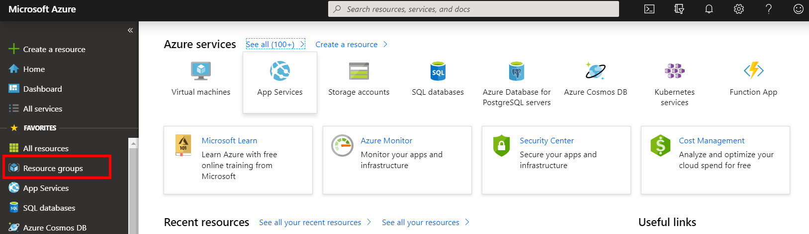 For Azure, go to the portal and sign in to your account. Client on Resource Groups in the left hand column.
