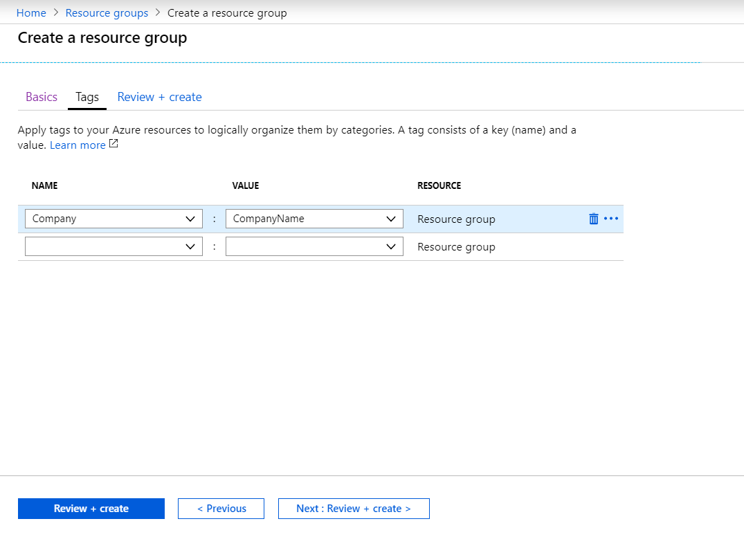 You can add tags to all resources in Azure, so I won’t go through them here but tag as appropriate to make it easy to report on them later.