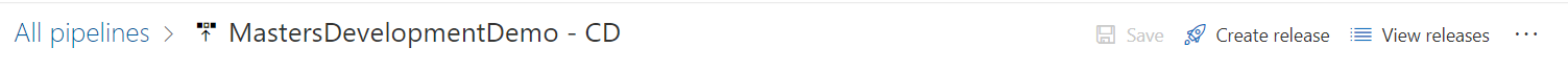 The easiest way to set up a quick release pipe for CD is to go to the build artifact you just created and click ‘Release’. This will automatically drop you in to a new Release Pipe and associate the artifact you just made