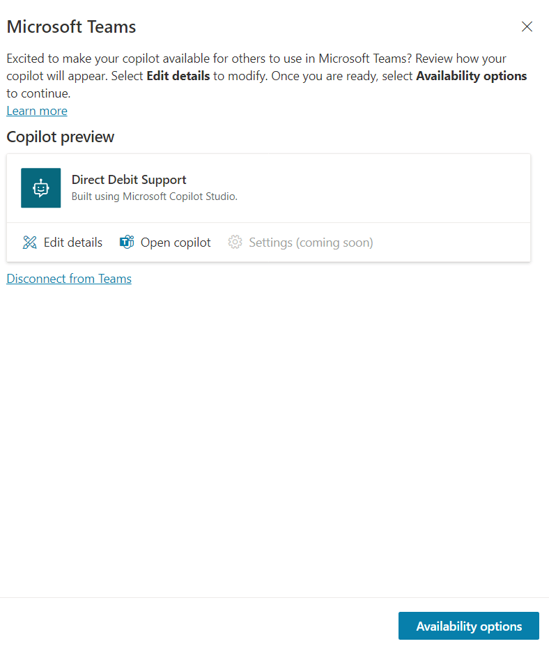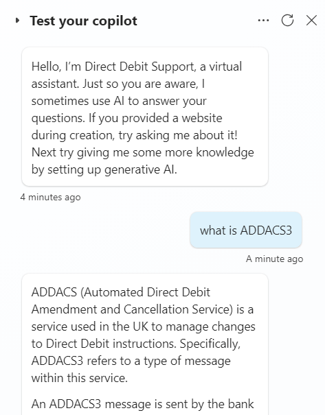 Lets make a Copilot! Copilot is Microsofts answer to GPT and LLMs in an enterprise context, with a focus on having a ‘Copilot’ to enhance your user experience, not replace it. In this Demo we walk through the process of creating a simple Microsoft Copilot using Copilot Studio and publishing it into Microsoft Teams. This Copilot will solve a simple problem, of helping your internal support agents understand Direct Debits. Whether you’re a developer or a business user, this post provides a straightforward introduction to harnessing the power of Microsoft Copilot for your team’s needs.